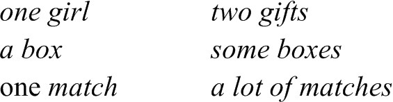 Some quantity words can he used only with uncountable nouns, with countable singular nouns, or with countable plural nouns. Others can be used with both uncountable nouns and countable plural nouns. Refer to the following chart for correct usage.
