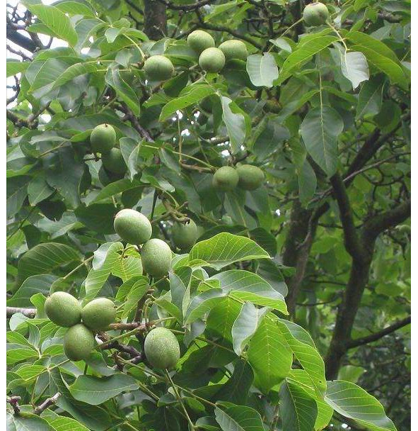 Орех (Juglans), (карта №6), род растений семейства ореховых. Листопадные однодомные деревья с крупными непарно-перистыми листьями. Цветки – в пазухах кроющих листьев; тычиночные – в повисающих многоцветковых серёжках; пестичные – в малоцветковых верхушечных соцветиях. Плод костянкообразный, с зелёной мясистой наружной оболочкой и твёрдой, деревянистой внутренней. Семя съедобное, без эндосперма. 14—40 видов, растущих в смешанно-широколиственных лесах, преимущественно в горах Южной Европы, Азии и Америки. Многие виды разводят с древних времён ради питательных вкусных плодов, для получения ценной красивой древесины. В СССР дико растут 2 вида: грецкий орех и маньчжурский орех.