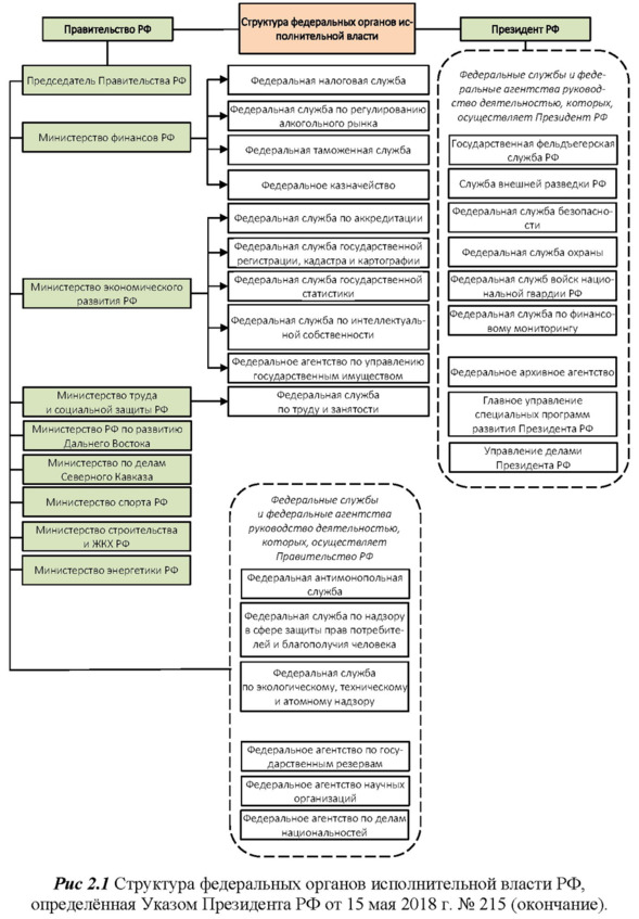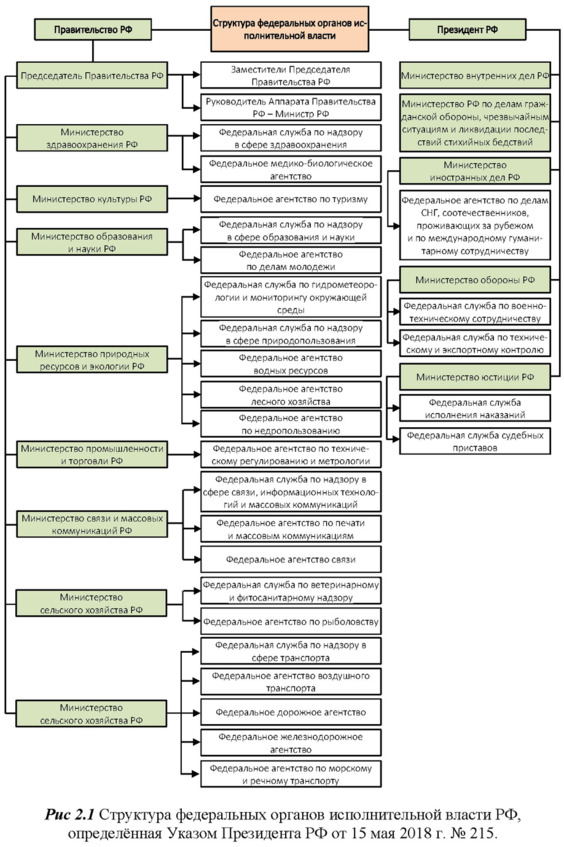 1. Изучите Структуру федеральных органов исполнительной власти РФ, определённую Указом Президента РФ от 21.05.2012 №636 (ред. от 15.05.2018), и представленную на рис 3.2. Внесите изменения в структуру федеральных органов исполнительной власти, согласно Указу Президента Российской Федерации от 14.09 2018 г. №514.