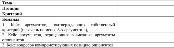 В результате подготовительного этапа у каждой из сторон должен быть набор соответствующих кейсов, представленных в виде таблицы СР 1.2.