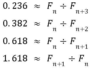 Отношение различных чисел Фибоначчи стремятся вышеуказанным значениям.