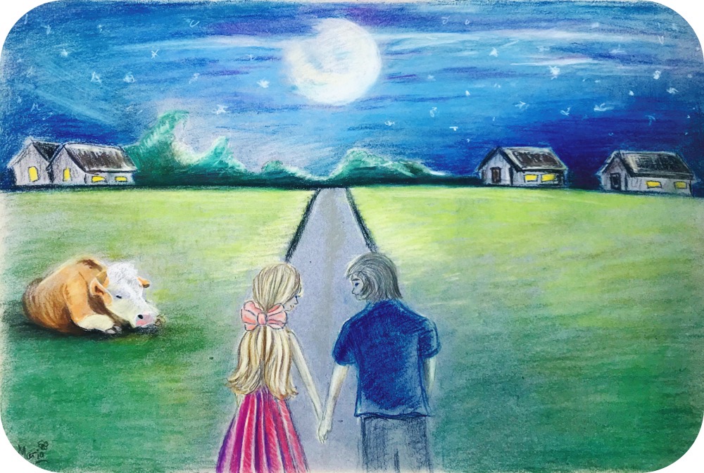 Был тёплый летний вечер. В небе повисла огромная Луна. Звёздам не было счета. Под таким небом любой вечер становится волшебным. Они шли по дорожке, через поле. Вдали мелькали бледные светлячки-огоньки, отражавшиеся в окнах маленьких домиков. Эмма шла, глядя на Алекса, все крепче прижимаясь к его руке, и думала: «А что, если бы это все не заканчивалось и осталось бы так навсегда. Он, Я, Поле, Небо, Звёзды. Если бы можно было взять и загадать желание. В такой сказочный вечер вдруг оно сбудется». Она зажмурилась что было силы, сжала руку Алекса в своей и загадала: «Пусть он будет моим. Только моим. И пусть мы всегда будем вместе!».