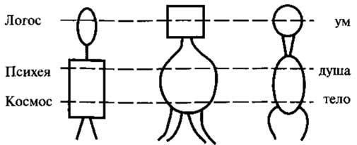 В этом представлении я следую античной традиции. Аристотель полагал, что в человеческом существе присутствуют три души: разумная (расположенная, по современным представлениям, в голове, но он помещал ее в сердце), чувствующая, эмоциональная, афективная – душа воли и энергии (расположенная в груди) и душа животная (расположенная в животе и гениталиях). Все эти души и уровни взаимно коррелируют, так что особенности ума могут быть лучше поняты, когда ум рассматривается в связи со всей статью данного существа, и не надо пытаться напрямую сопоставлять только логику с логикой, на чем я обжегся на первых порах своего исследования.