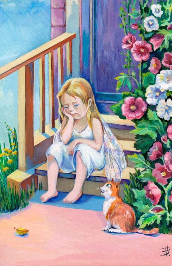 Все дети умеют летать, а эта девочка не умела. А как же это здорово, когда у тебя крылья за спиной! И какое это счастье – прыгать по облакам или летать прямо к звёздам! Девочке было очень грустно. Она часто плакала, потом перестала кушать, а потом и спать перестала.