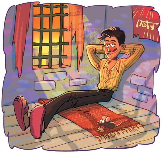 Пока он стучал, отбивая ладони, Максим оглядывал каморку. Когда глаза привыкли к полумраку, он заметил, что они в камере не одни. В углу, прижавшись спиной к облупленной стене и закинув руки за голову, сидел тощий молодой человек с очень хитрым взглядом. Положив ногу на ногу, он всем своим видом показывал, что его абсолютно ничто не беспокоит.