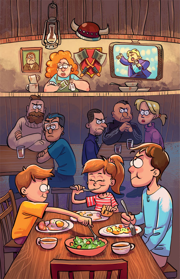 Алевтина молча кивнула и поспешила на кухню, а ребята, с любопытством оглядываясь по сторонам, двинулись к свободному столику.