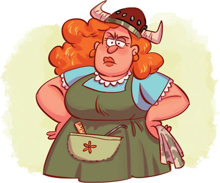 На стене за её спиной висел здоровенный рыцарский щит, поверх которого были скрещены два топора. Рядом болтался на длинной цепочке старинный керосиновый фонарь. А над всей этой композицией высился металлический шлем с рогами – прямо как у викингов из фильмов.