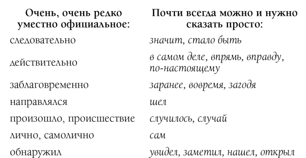 Спору нет, изредка чисто канцелярские слова и обороты даже нужны – для портрета или речи сухаря-чиновника, для «жанровой сценки» в совершенно определенном духе. Но тем важнее, чтобы весь окружающий текст и речь других людей были совсем иными – живыми, естественными. Вот тогда ярче, отчетливей станет ироническая или осуждающая характеристика.