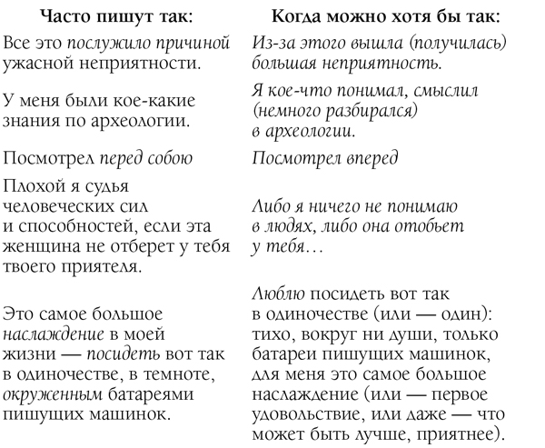Беда, если канцеляризмы присущи самому переводчику, писателю. В огромном, подавляющем большинстве случаев лучше заменить официальное или книжное слово – разговорным, длинное – коротким, сложное – простым, стертое, безликое – конкретным, образным. Этому не так уж трудно научиться даже без постоянной подсказки редактора стороннего – с помощью внутреннего «саморедактора», воспитывая собственное ухо и глаз. И быстро убеждаешься: это вовсе не ведет к упрощению или старомодности, ничуть не бывало! Это лишь очистит и прояснит любую прозу. Напротив, казенные, необязательные слова, слова-штампы всякую фразу только засоряют и запутывают.