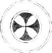 La rueda mide 71 mm Ø y consta de dos orlas, un poco más ancha la exterior (23 y 25 % Ø), delimitadas por gráfilas simples. La cruz es patada y lleva unas breves potenzas alabeadas, cóncavas en travesaño y pie, pero convexa en el cabecero.