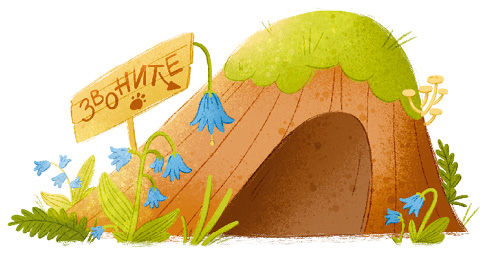 Привела морского свина цепочка следов к чёрной-чёрной норе. У входа росли колокольчики, а рядом красовалась надпись на коре: «Звоните!» Заглянул в нору Хрумка и тут же отпрянул: темно-о! Но было ему всё-таки интересно познакомиться с хозяевами норы, и он несмело дёрнул за колокольчики.