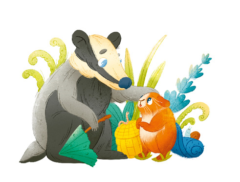 – Не извиняйся, малыш! – произнёс тот же самый голос, принадлежащий, как оказалось, большому Барсуку. – А вот ты, Лиса, уходи прочь, хитрая! Не съешь ты его, не позволю я тебе!