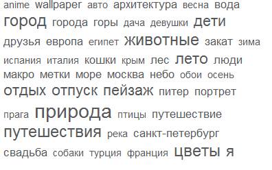 Облако тэгов (рис. 10). Выглядит оно по-разному, внедряется в сайт и располагается, по возможности, так, чтобы присутствовать на каждой его странице. Смысл в том, чтобы в одном месте собрать несколько ключевых слов или фраз – наиболее вероятных искомых комбинаций со стороны пользователей, попавших на твой сайт, – и дать возможность по щелчку перемещаться на интересующий раздел сайта. Подробнее можно прочесть на wikipedia.org.