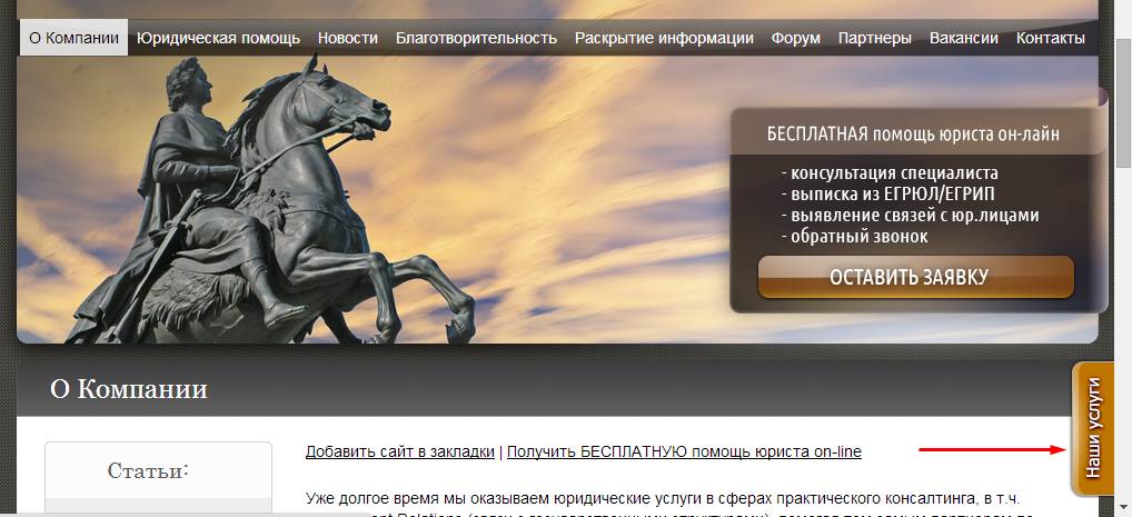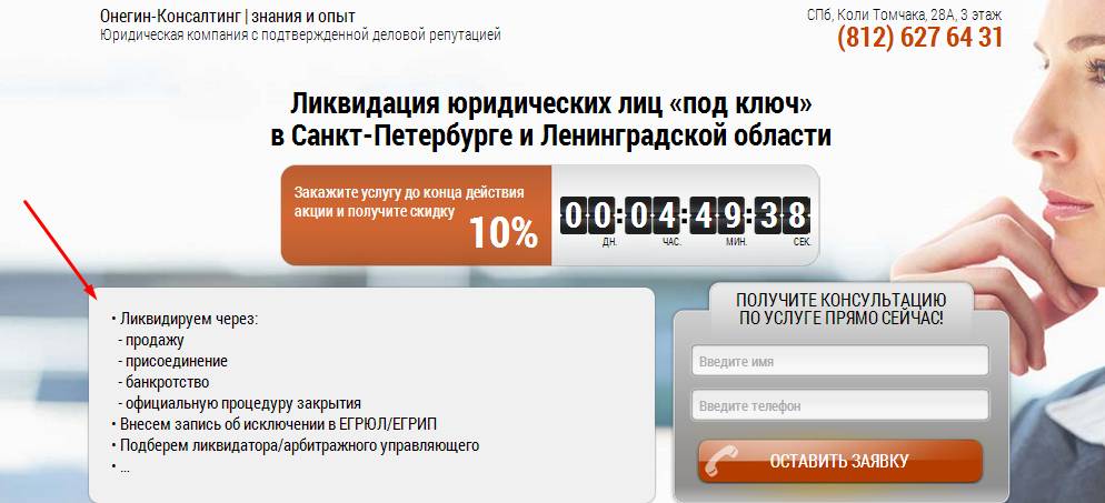 Далее я попытаюсь описать основные элементы на примере одного из принадлежащих мне лэндингов (liquidation-ok.ru), посвященного ликвидации юридических лиц: