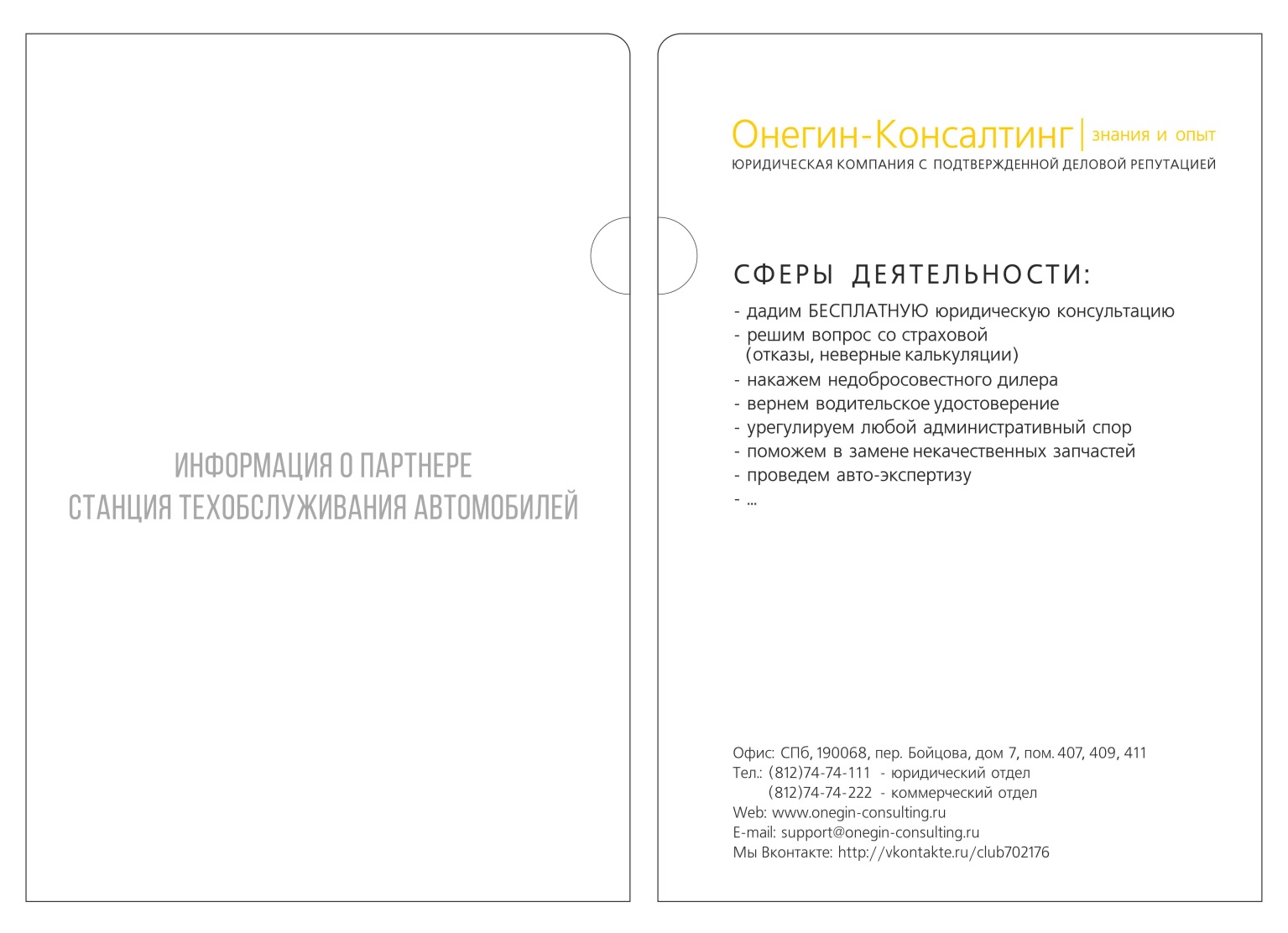 Потенциальный партнер может обратиться к нам за предоставлением исключительного права на использование фирменного наименования и деловой репутации «Онегин-Консалтинг» в своем регионе, тем самым став нашим официальным представителем. Данная процедура происходит при полной поддержке головной компании и включает возможность использования ее лицензий, допусков, кадрового и прочих ресурсов. Предпочтение, в силу специфики судебной системы и местонахождения головной организации, отдается регионам Северо-запада и Центрального федерального округа.