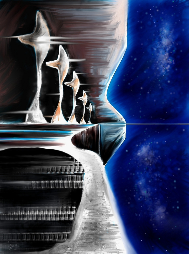Я не пожала протянутую ладонь, потому что меня, как и других ребят загадочный юноша пугал. Хотелось избежать щекотливой ситуации и помог старт космопорта, корабль раскинул острые крылья, ведущий включил двигатели и, набрав высоту пять тысяч – пустил машину в открытый космос.