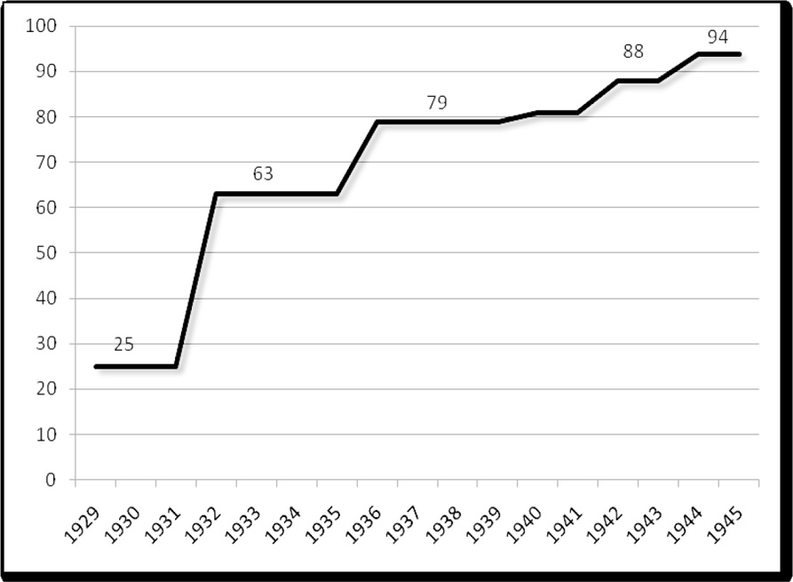 Такому же дроблению подверглись монополисты и в других отраслях: химической (Dupont, Viscose…), строительной и стройматериалов, в жилищно-коммунальной сфере и т. д.[156]. В 1936 г. в качестве дополнительной меры был введен прогрессивный налог на нераспределенную прибыль[157], который в сочетании с прогрессивным налогом на прибыль, препятствовал накоплению капитала для скупки конкурентов, а также слияниям и поглощениям, поскольку более крупная компания начинала платить более высокие налоги.