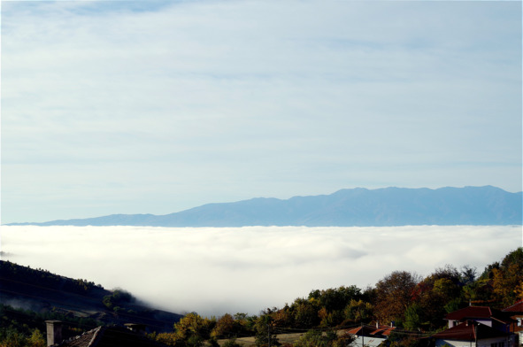 Вот и сформировалась наша окраина с климатом, явно отличающимся от континентальной Болгарии: здесь всегда теплее, снег не лежит дольше нескольких часов, да и выпадает пару раз за год. И то не повсюду – у наших друзей Россинских в селе Илинденци, которое метров на двести ниже и по горизонтали километрах в пяти от нас, в этом году снега и не было. Смотрим мы с горы – а облака под нами, хотя альтиметр всего 560 метров над уровнем моря у нашего дома показывает. Но бывает, что облака ходят по Плоски, как белые отары, а внизу и чуть в стороне – ясное солнышко.