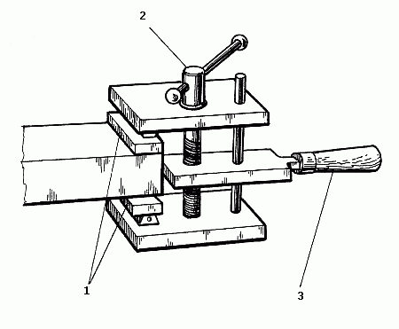 Рис. 9. Тисочки-струбцины: 1 – губки; 2 – винт с рукояткой; 3 – ручка