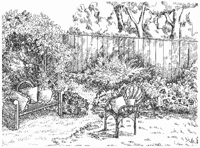 Доминирующим в этих цветочных композициях должен стать белый цвет и пастельные оттенки, подчеркивающие основную гамму участка. Объемной композицию сделают высокое дерево, контрастирующее с низкорослыми кустарниками, остроконечная крыша дома и длинная ваза в виде конуса с ампельными растениями. В дополнение ко всему повсеместно можно расставить различные скульптуры, оживляющие сад.