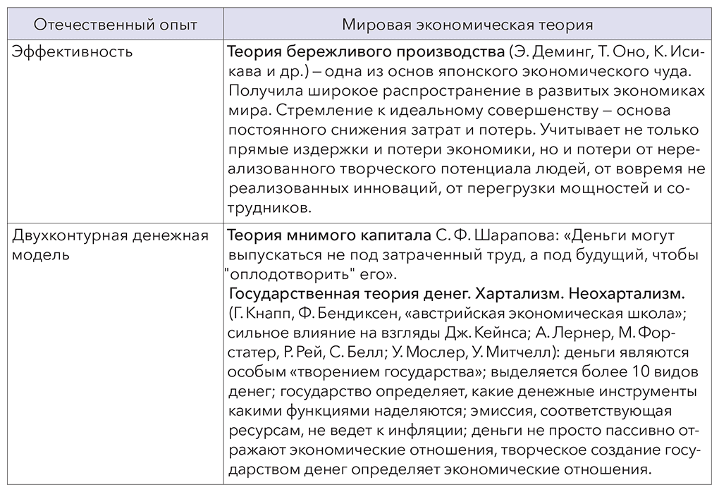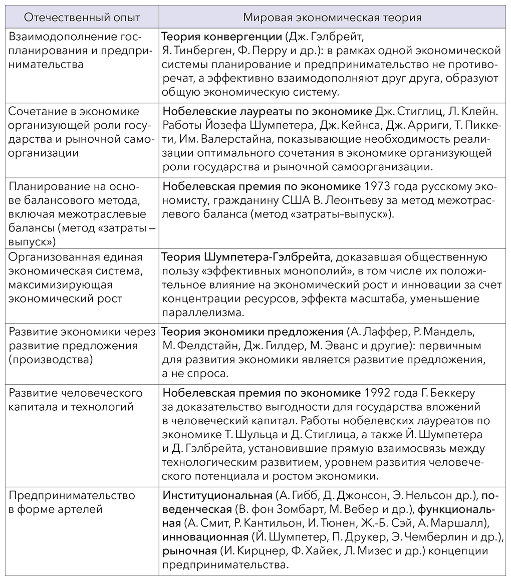 При этом ключевые элементы отечественной экономической системы 1929–1955 годов находят свое подтверждение в мировой экономической теории, в основном в более поздних работах выдающихся мировых экономистов.