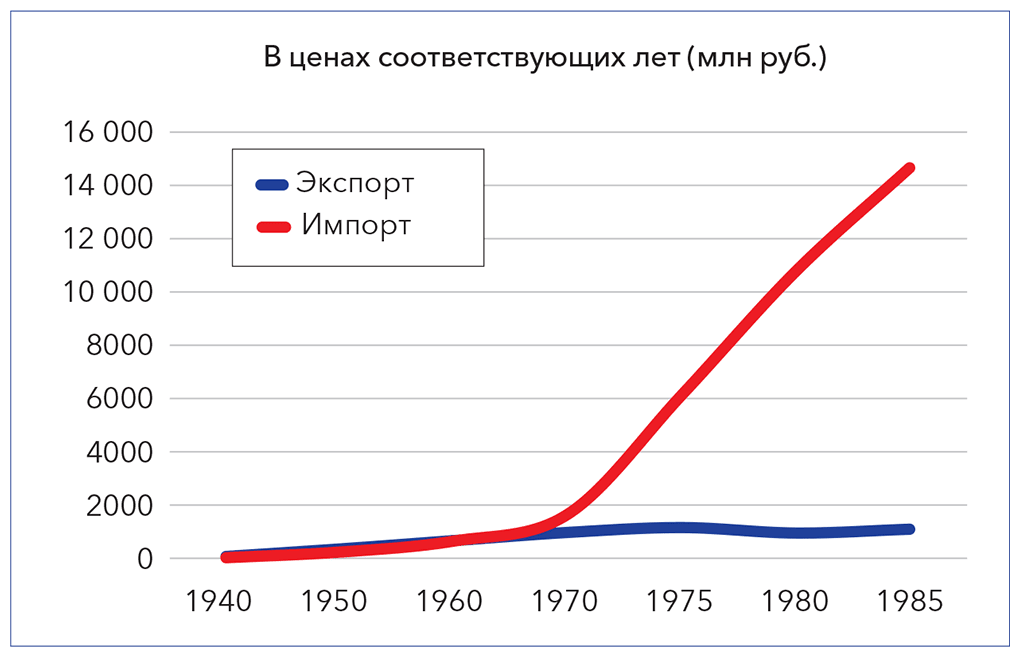 Заместитель председателя Правительства, председатель Госплана (1965–1985 годы) Николай Константинович Байбаков так характеризует складывающиеся в результате тенденции в экономике на примере пищевой промышленности: «Резко ухудшилась продукция пищевой промышленности. Пищевики из прежнего количества мяса производили больше колбасы, увеличив в ней содержание крахмала. Прибыль увеличивалась не за счет роста эффективности производства и ресурсосбережения, а путем скрытого повышения цен на выпускаемые товары. Производственники снижали качество продукции, увеличивая ее количество. Словом, гнали численные показатели. Прибыль предприятий создавала видимость благополучия. Деньги на счетах предприятий накапливались, но не имели ресурсного обеспечения. Мы стали закупать зерно, мясо и другое продовольствие за границей. Значительно увеличился импорт готовых товаров за счет снижения импорта новой техники. Нас выручал экспорт нефти и газа, цены на которые значительно выросли»{438}.