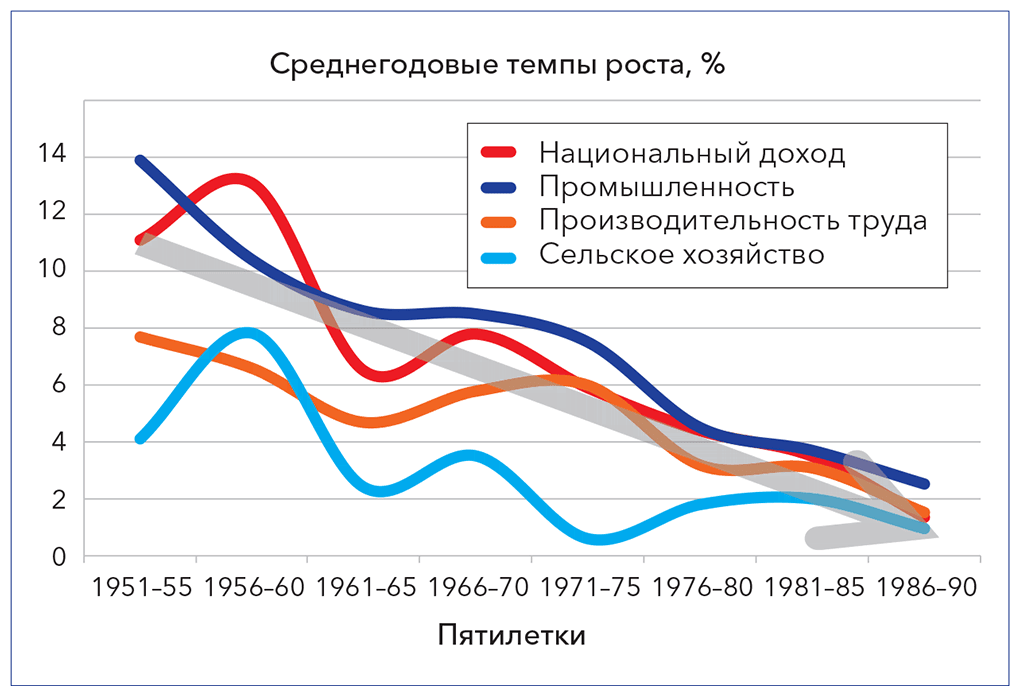Рис. 78. Основные экономические показатели периода 1951–1990 гг.