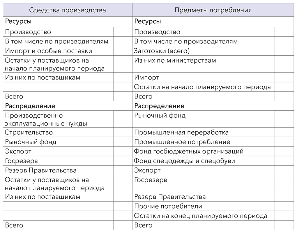 Всякий баланс состоит из двух уравновешивающихся частей: приходной и расходной. В первой части материального баланса определяются все возможные ресурсы (за счет производства, запасов, импорта), а во второй части – все расходы в плановом периоде (на производственные и строительные цели, на личное потребление, на экспорт, на создание резервов). Все это учитывается в общеэкономическом масштабе, в разрезе конкретных регионов, отраслей, чтобы иметь возможность составить конкретный адресный план материально-технического снабжения.