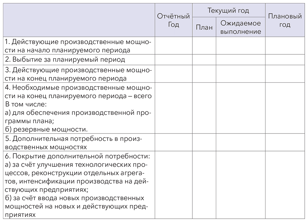 Таблица 4. Примерная схема баланса производственных мощностей по отдельным видам продукции