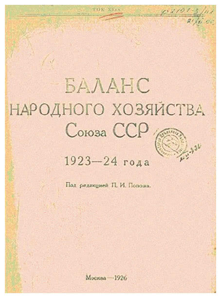Баланс народного хозяйства. Впервые в мире на практике идея составления баланса в масштабах всей экономики реализована в нашей стране при составлении баланса народного хозяйства за 1923–1924 годы.