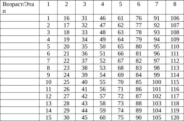 И в этой связи я многое обдумывал, как же делится наша жизнь в действительности, как ее разделить по годам. И пришел к тому, опираясь на переходный возраст, на наше мышление до и после, я разделил ее на несколько этапов, точнее на восемь этапов жизни, как показано на рисунке. Сейчас я нахожусь всего лишь на третьем этапе, поскольку мне всего тридцать один год. Впереди еще весь третий этап, поскольку он только начался, а потом еще пять этапов по пятнадцать лет. Вы представляете сколько это? Сколько всего я могу успеть сделать, а сколько книг написать? А Вы сколько успеете? Как Вы поменяете свою жизнь после того, что теперь знаете? Все еще считаете, что поздно начать? Смотрим таблицу, ищем свой возраст, отмечаем каждый свой этап жизни, и действуем. А еще лучше перепишите его себе, и отметьте в нем достижения свои, только достижения и лучшие моменты. И Вы поймете, что Ваша жизнь в самом начале развития приключений.