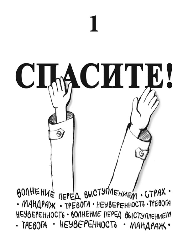 Я получаю много писем с вопросом о том, как справиться со стартовым мандражом. Если в письме написано: «Спасите! Помогите! Караул! На вас одна надежда!», мне сразу становится понятно: речь пойдет о том, что автор не может справиться с волнением перед выступлением. Знакомая проблема? Впрочем, я не знаю ни одного человека (включая и себя), который не испытывал хотя бы легкого волнения. Мы же говорим об избыточном волнении, парализующем память и речь, жестикуляцию и мимику. Пожалуй, преодоление одного только этого страха позволило бы сотням и тысячам людей выступать успешно и с удовольствием.