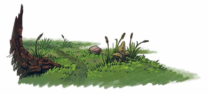 Пока они идут по тропинке, у Мирьи есть возможность хорошенько рассмотреть этих двоих. Чёрно-зелёные крылья Буфо напоминают тёмно-зелёную расцветку одной из стрекоз, а оранжевые пятна на крыльях Триту светятся как маленькие нарисованные светлячки.