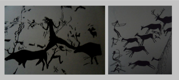 Для эпохи мезолита с изобретением и повсеместным распространением, в частности, лука характерно формирование ощущения собственной силы и значимости, что привело к развитию новых художественных форм: схематические изображения коллективных охотничьих сцен, где еще отсутствует индивидуальный человек, но уже подчеркиваются физические возможности человеческого тела. [49]