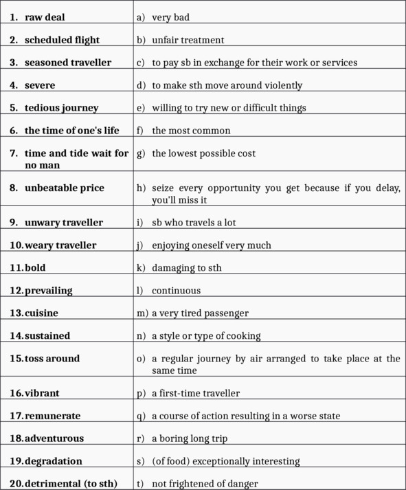 3. The _____________________ from Bristol to Athens is at five o’clock every Tuesday.