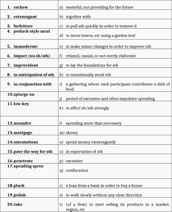 13. Mary is a very _____________________ woman who spends far more money than is necessary.