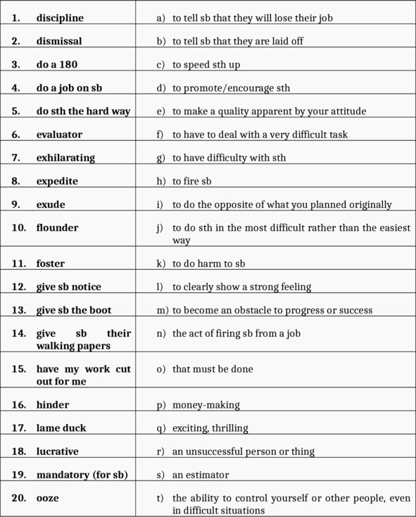 18. Although Mitch is the fastest worker in the office, he was given _____________________ by his boss and eventually lost his job.