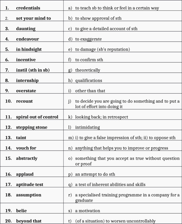 10. Martin _____________________ in detail all the things he did on his one-year training course.