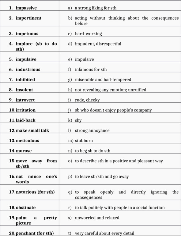 Have you ever met someone who is very laid-back and calm, but also meticulous in their work? These people are often very industrious and have a great work ethic. On the other hand, there are those who are impetuous and impulsive, making decisions without thinking them through. They may be described as having an impertinent attitude towards authority figures, which can lead to trouble.