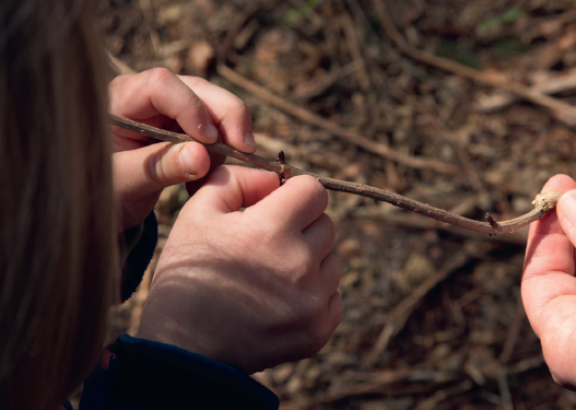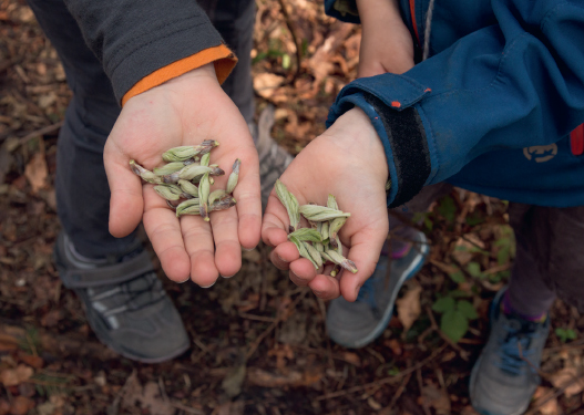 Gerade bei Knospen von Bäumen, die ihre Äste oft außer Reichweite der Kinderarme in Richtung Licht recken, sollten die Erwachsenen die Äste sanft nach unten halten, damit die Kinder die Knospen sammeln können. Auch hier bitten wir um Achtsamkeit dem Baum- oder Strauchwesen gegenüber. Der Ast soll nur so weit gebogen werden, dass er nicht knickt!