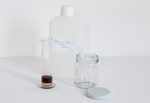 6. Nach Ablauf von drei bis vier Wochen wird für die Weiterverarbeitung und Fertigstellung des Gemmomazerats folgendes Material benötigt: