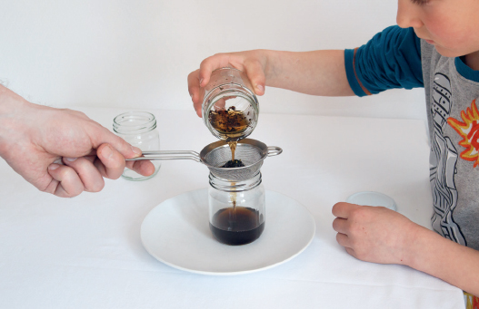 7. Nun wird das Glas mit den eingelegten Knospen durch ein feinmaschiges Sieb abgegossen. Die Knospenrückstände können auf den Kompost gegeben oder zurück zum betreffenden Baum oder Strauch in Wald oder Garten gebracht werden.