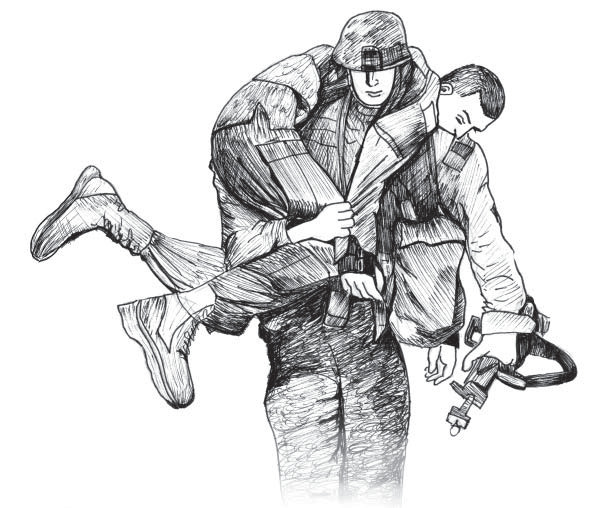 Откинул каску и стянул с себя тяжелый бронежилет. Отстегнул пояс с подсумками и достал аптечку. Постарался вспомнить, чему учили на подготовке.