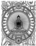 На буддийском символе «Совершенство» в центре изображен сам Будда, вокруг – многообразие различных знаков и сопутствующих атрибутов.