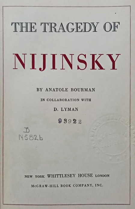 Титульный лист книги А. Бурмана «Трагедия Нижинского» из личной библиотеки автора