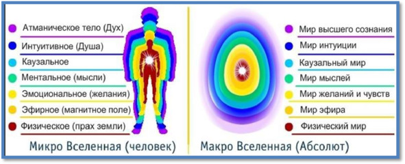 Человек – это семь тел вместе с физическим. Физическое тело тоже считается тонким, потому, что оно тоже имеет свой уровень вибраций. В нѐм происходят такие же священные, необъяснимые вещи, как и на более высоких уровнях. Вибрации человеческого мозга нельзя назвать процессом «материального мира». Тонких тел намного больше у человека, мы остановимся только на семи основных.