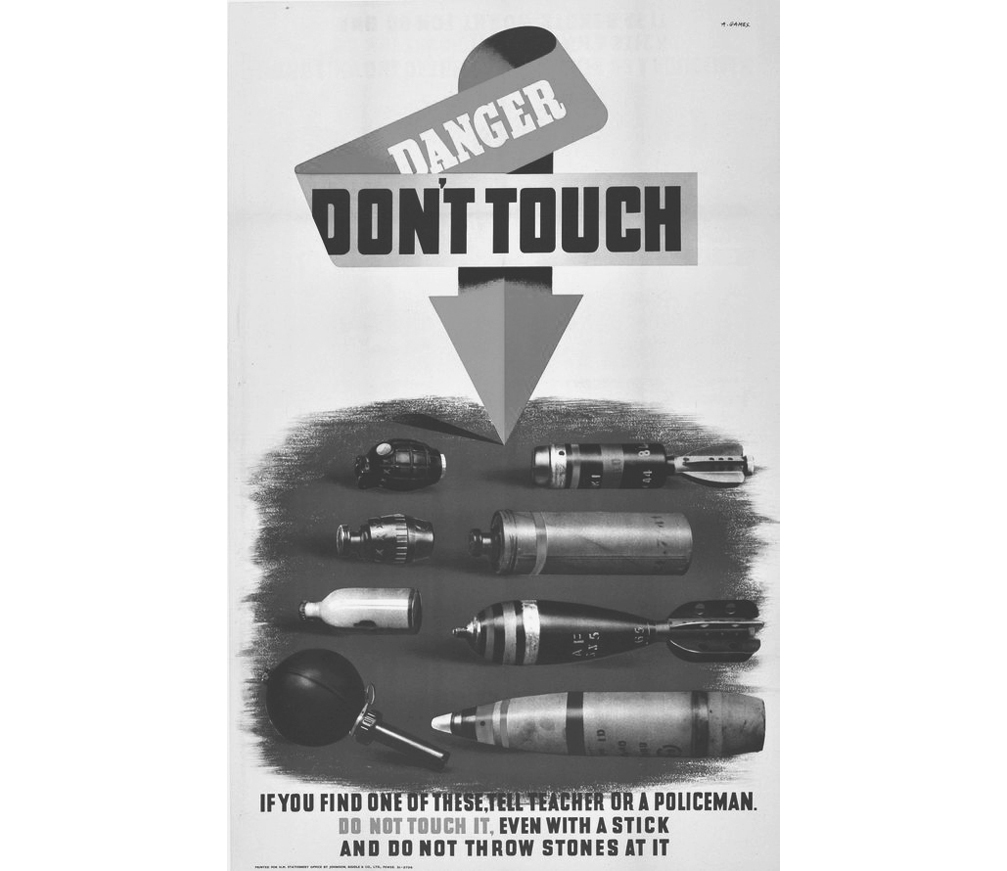 The notice was on the board outside the police station on Heyes Lane. A red arrow pointed to pictures of a high-explosive shell, small bombs with fins, a hand grenade; and there were some harmless-looking things too. And underneath was printed: