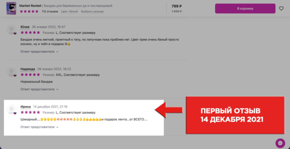 Как мы видим из данной картинки: у нас есть 1000 продаж. Смотрим, когда был первый и последний отзыв.