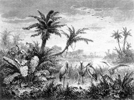 Калиф одобрил предложение своего визиря и пошел с ним к пруду. Придя туда они увидели аиста, который важно расхаживал, отыскивая лягушек и иногда что-то курлыча про себя. В то же время далеко вверху, в воздухе, они увидели другого аиста, летевшего к этому месту.