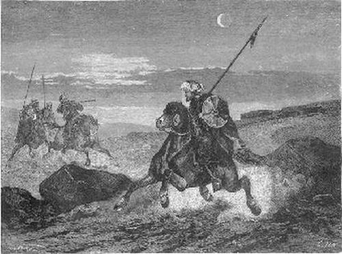 Так говорили между собой в палатке путники, а стража, расставленная вокруг места привала, начала беспокоиться. На расстоянии получаса показалась довольно значительная кучка вооруженных всадников; они ехали, по-видимому, прямо к лагерю. Поэтому один из людей стражи пошел в палатку известить, что они, вероятно, подвергнутся нападению. Купцы стали совещаться между собой, что им делать: идти ли навстречу всадникам или подождать нападения.